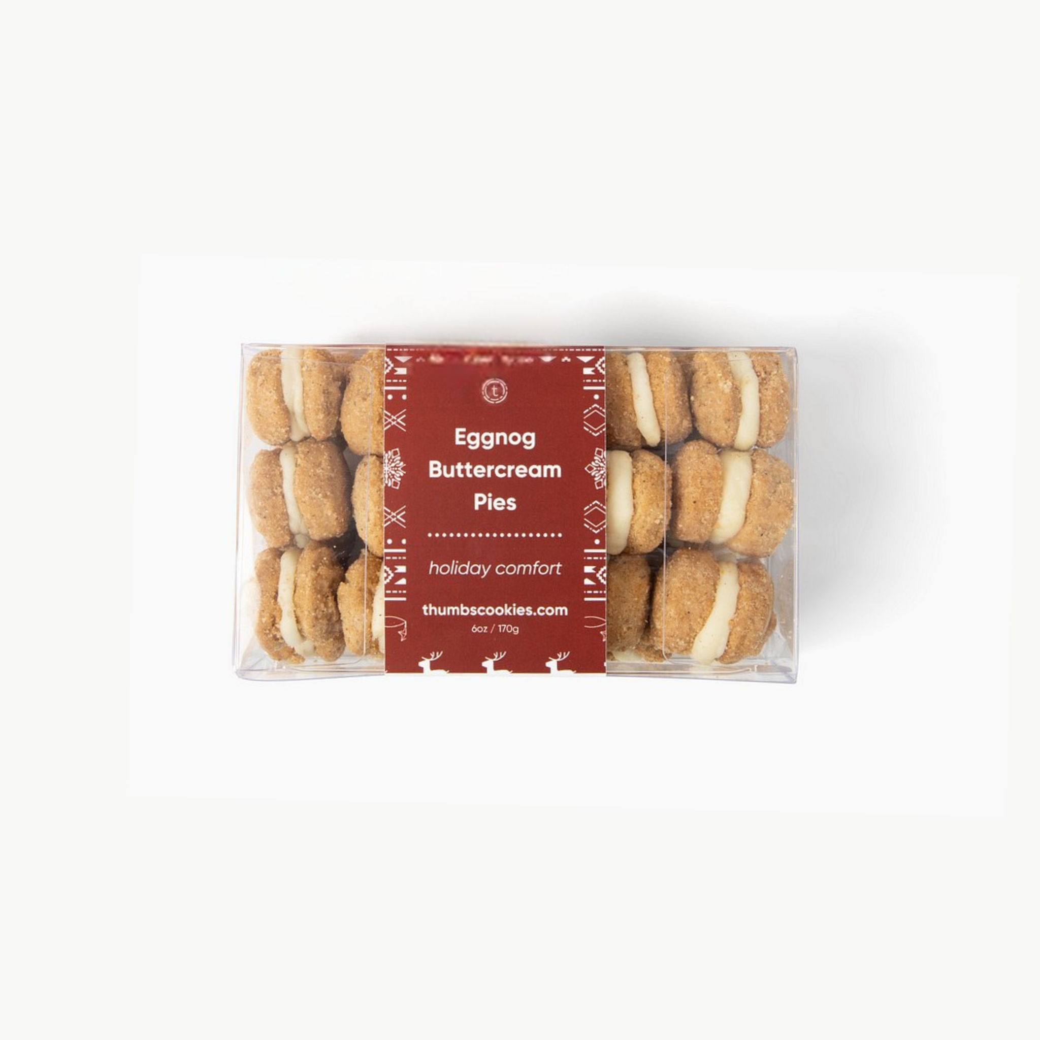Description: Imagine your favorite holiday drink transformed into a tiny cookie sandwich! Two of our ginger spice cookies brought together with a homemade eggnog buttercream (no eggs). You won't believe how much it tastes like eggnog in a cookie!